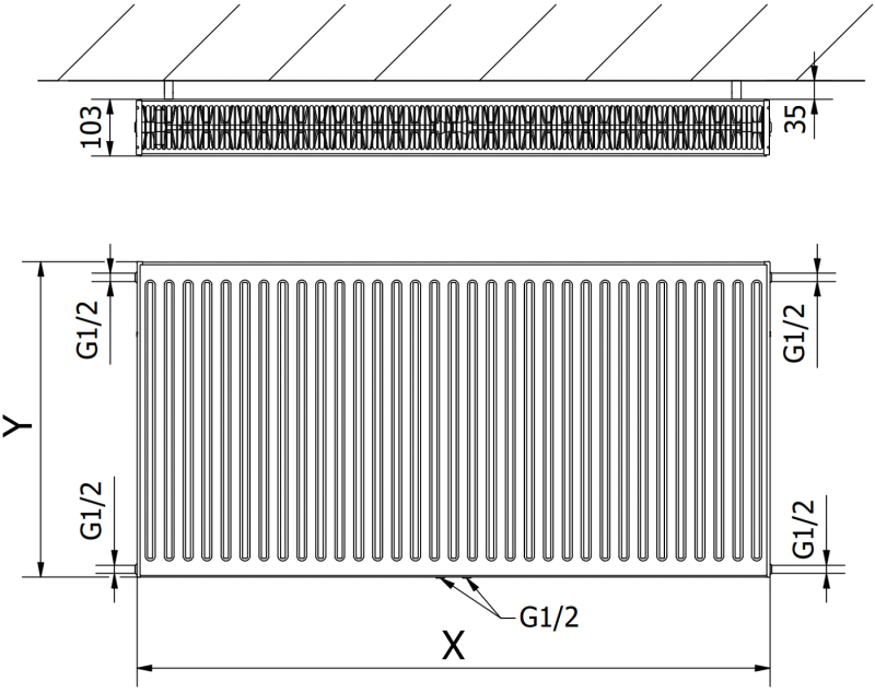 Rozstup zvislých vodných kanálov: 33,3 mm