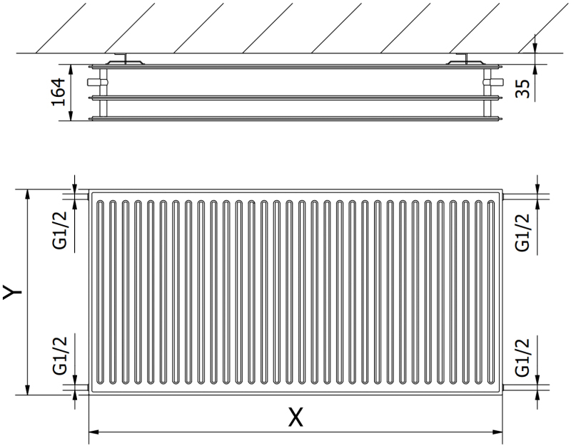 Rozstup zvislých vodných kanálov: 33,3 mm