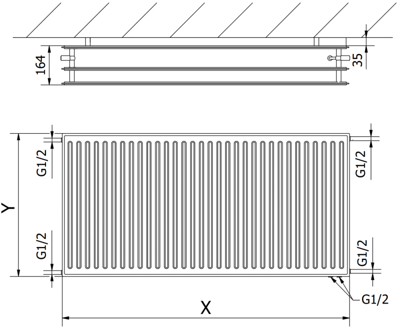 Mexen CVH30 radiátor 500x3000, spod. príp., 3890 W, biely W630H-050-300-00