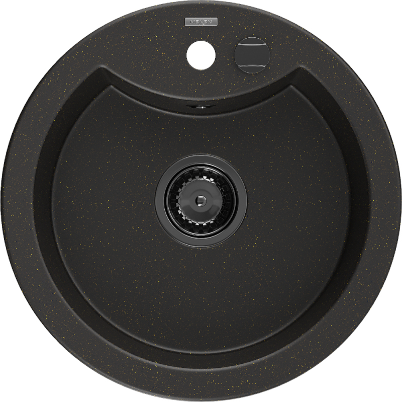 Mexen Diego 1miskový granitový drez 488 x 480 mm, čierna / zlatá metalíza, čierny sifón - 6512481000-75-B