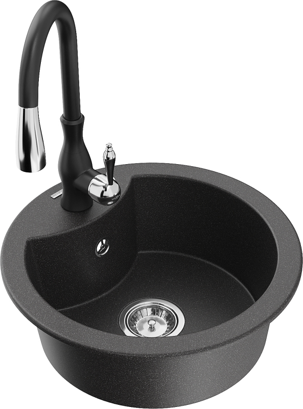 Mexen Diego 1miskový granitový drez s kuchynskou batériou Savita, škvrnitá čierna - 6512-76-672601-70
