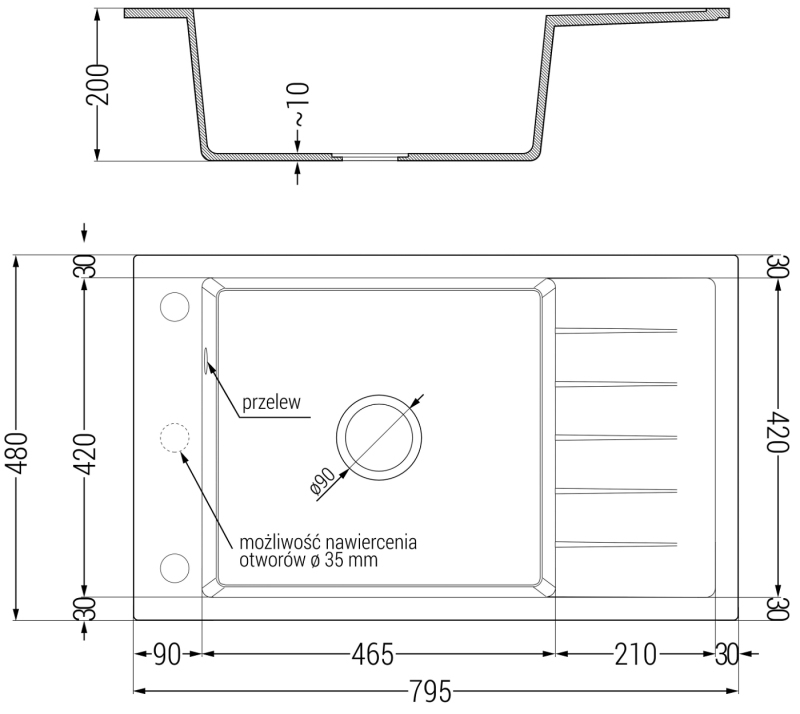 Jeden dodatočný vyfrézovaný otvor na samodierovanie ø35