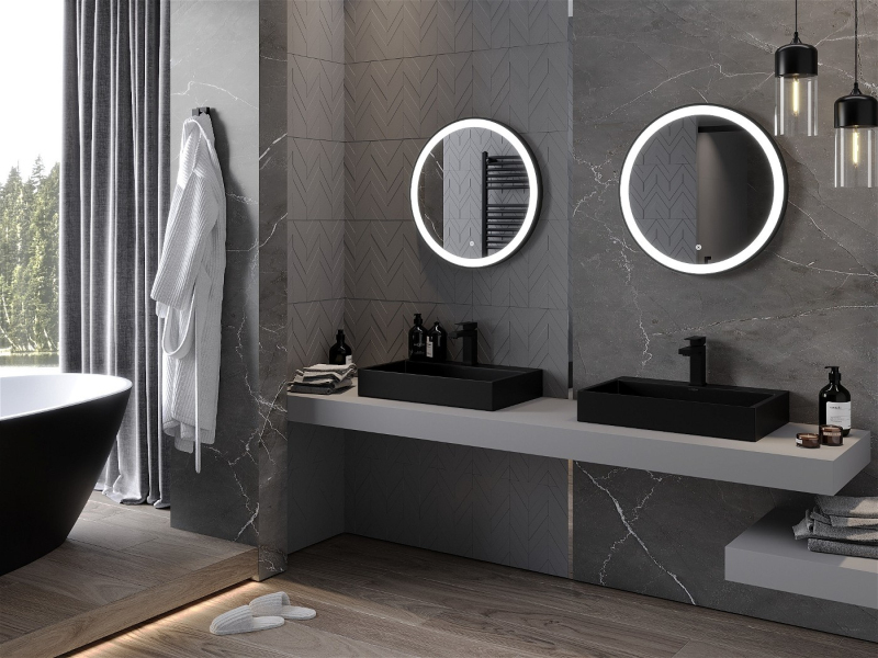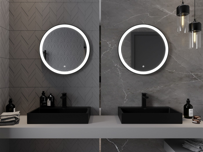 Mexen Esso kúpeľňové zrkadlo, okrúhle 60 cm, LED 6000K, čierny rám 9825-060-060-611-70