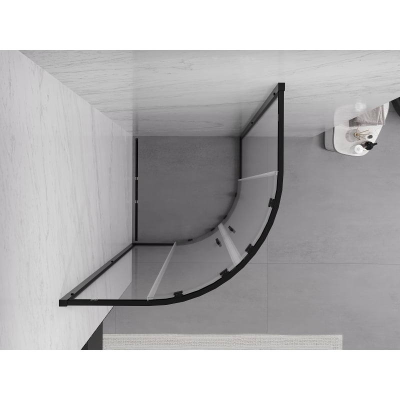 Mexen Exo polkruhový posuvný sprchovací kút 80 x 80 cm, priehľadný, čierny - 8132-080-080-70-00