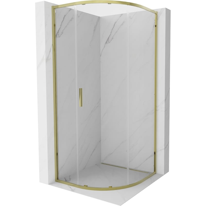 Mexen Exo polkruhový posuvný sprchovací kút 90 x 90 cm, priehľadný, zlatý - 8131-090-090-50-00