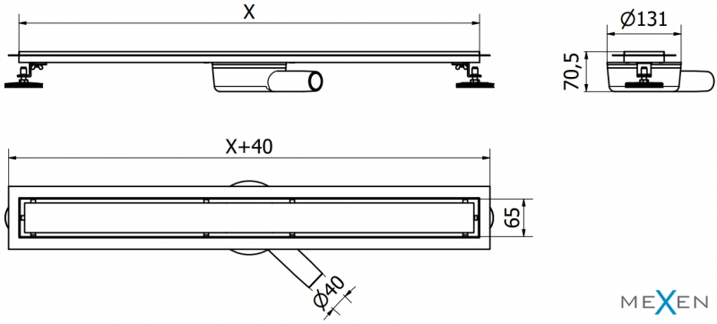 Mexen Flat 360 ° M08 otočný lineárny odtok 70 cm, zlatý - 1525070-40