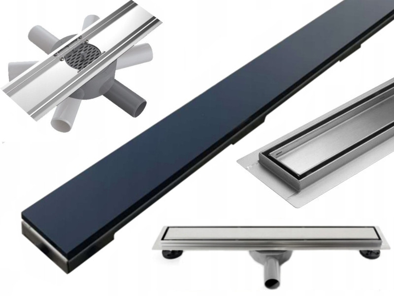 Mexen Flat 360 ° MGB otočný odtokový žľab 80 cm čierne sklo - 1026080-40