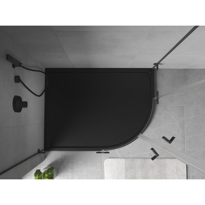 Mexen Flow polkruhová asymetrická sprchová vanička, úzka, ľavá, 100 x 80 cm, matná čierna - 46Q708010L