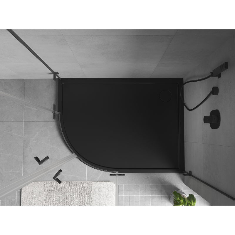 Mexen Flow polkruhová asymetrická sprchová vanička, úzka, pravá, 100 x 80 cm, matná čierna - 46Q708010R