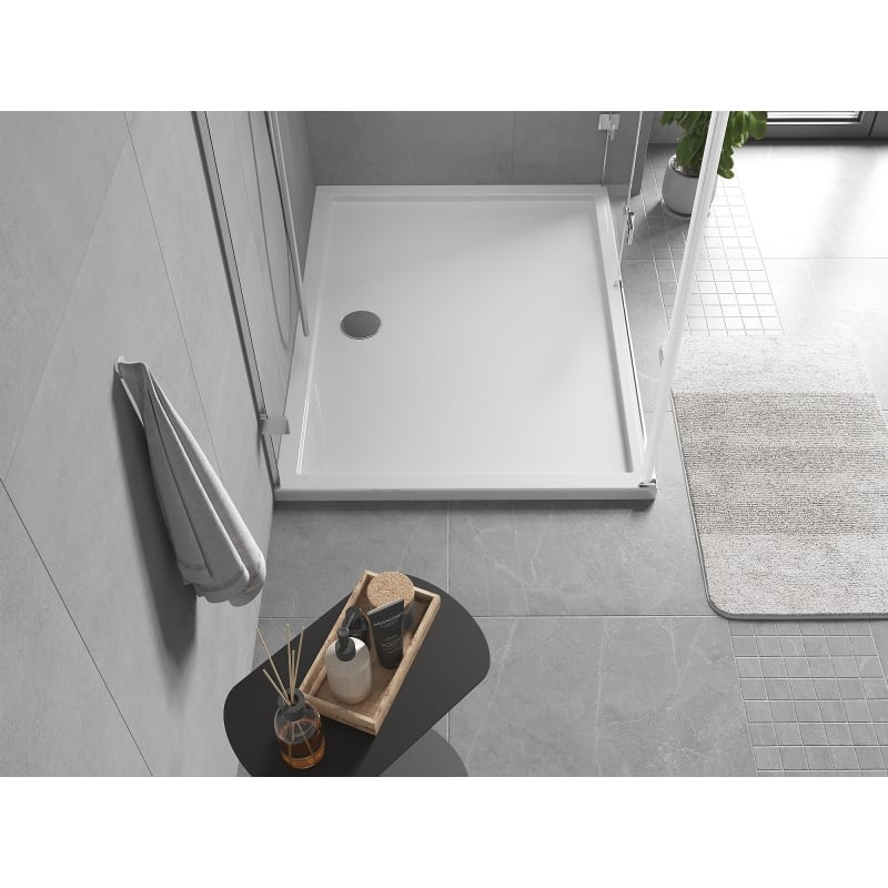 Špecifikácia produktu: Rozmer: 130x95x4 cm Farba: Lesklá biela Typ: Obdĺžnikový, Tenký Materiál: Sanitárny akrylát Zosilnené dno Priemer odtoku: 90 mm Sprchová vanička neobsahuje sifón