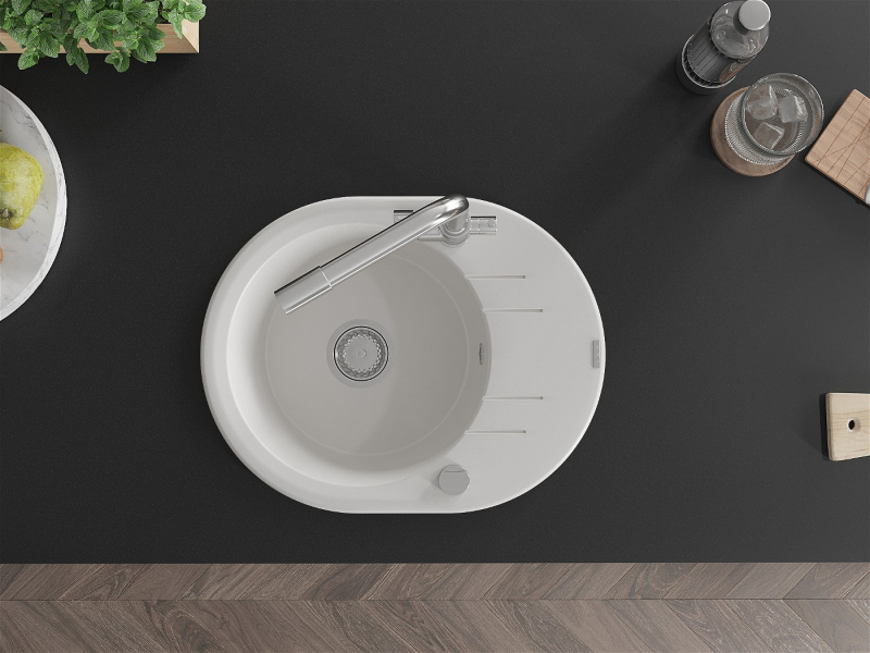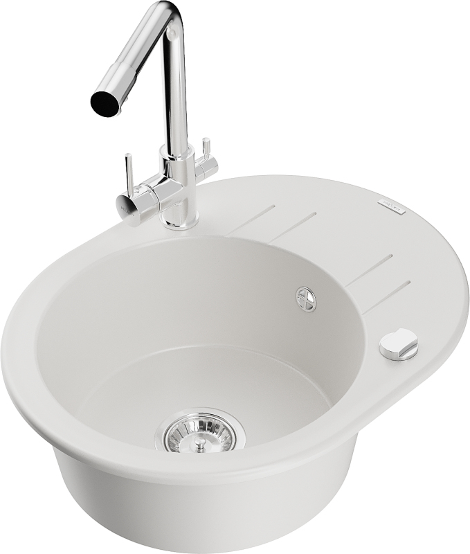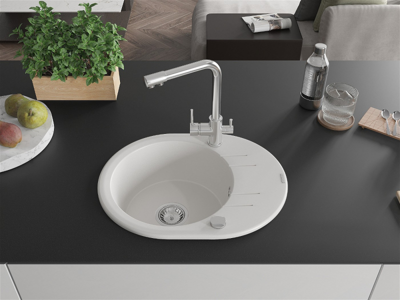 Mexen Kevin 1-miskový granitový drez s odkvapkávačom a kuchynskou batériou Duero, biela - 6517-20-671600-00