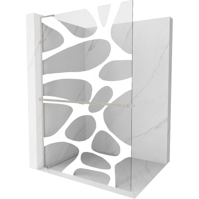 Špecifikácia produktu: Šírka: 110 cm Výška: 200 cm Montáž: Univerzálna, pravá alebo ľavá Farba skla: Biela vlna Povrchová úprava: Kartáčovaný nikel Typ skla: Tvrdené Hrúbka skla: 8 mm Profil: Hliník Uhlový stabilizátor v tvare L: Nerezová oceľ Materiál police 3,2 cm Max. dĺžka police: 140 cm Možnosť skrátenia police Povlak na jednoduché čistenie Vyrovnanie nerovností steny Možnosť inštalácie na sprchovú vaničku alebo obklady