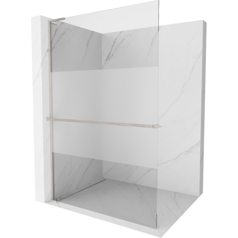 Špecifikácia produktu: Šírka: 70 cm Výška: 200 cm Montáž: Univerzálna, pravá alebo ľavá Farba skla: Priehľadná/Mlátová Povrchová úprava: Kartáčovaný nikel Typ skla: Tvrdené Hrúbka skla: 8 mm Profil: Hliník Uhlový stabilizátor v tvare L: Nerezová oceľ Materiál Výška: 3,2 cm Max. dĺžka police: 140 cm Možnosť skrátenia police Povlak na jednoduché čistenie Vyrovnanie nerovností steny Možnosť inštalácie na sprchovú vaničku alebo obklady