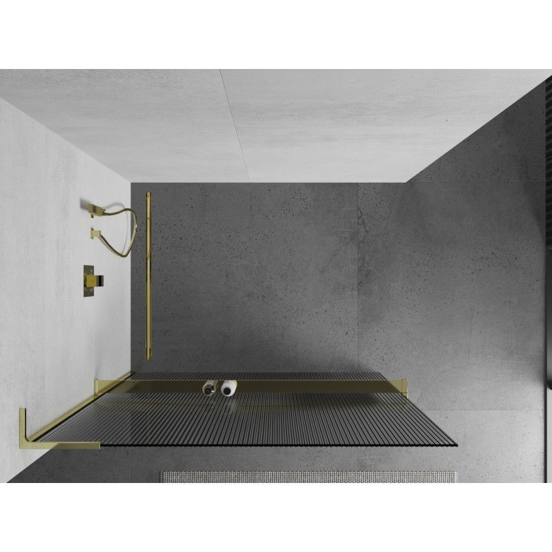 Mexen Kioto+ L sprchová zástena s poličkou 90 x 200 cm, pruhy, zlatá - 800-090-123-50-09