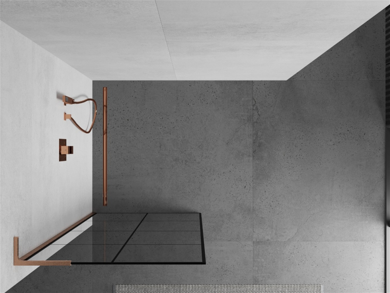 Mexen Kioto L Walk-in sprchová stena 90x200, čierny vzor, kefa. meď 800-090-103-65-77