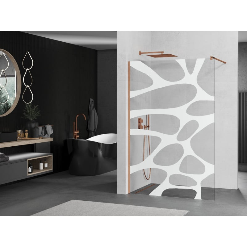 Špecifikácia produktu: Šírka: 110 cm Výška: 200 cm Montáž: Univerzálna, pravá alebo ľavá Farba skla: Biela vlna Povrchová úprava: Ružové zlato Typ skla: Tvrdené Hrúbka skla: 8 mm Profil: Hliník Konzola: Nerezová oceľ Max. dĺžka konzoly: 150 cm Konzolu je možné skrátiť Povrchová úprava pre ľahké čistenie Vyrovnáva nerovnosti steny Možnosť montáže na sprchovú vaničku alebo dlaždice