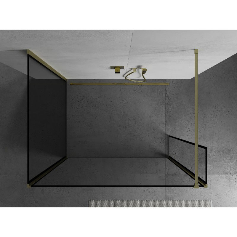 Špecifikácia produktu: Šírka: 140x100x30 cm (stena X - 140 cm, stena Y - 100 cm, stena Z - 30 cm) Výška: 200 cm Montáž: Univerzálna Farba skla: Čierny rám Povrchová úprava: Kartáčované zlato Typ skla: Tvrdené Hrúbka s Hrúbka Max. dĺžka konzoly: 150 cm Konzolu je možné skrátiť Povrchová úprava pre ľahké čistenie Vyrovnanie nerovností steny Možnosť inštalácie na sprchovú vaničku alebo obklady