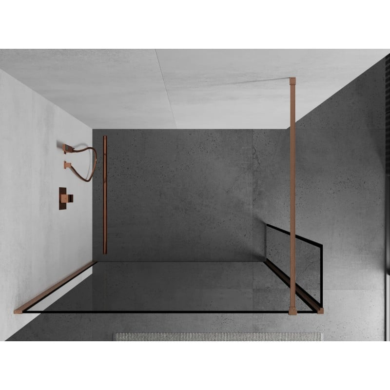 Špecifikácia produktu: Šírka: 140x40 cm (stena X - 140 cm, stena Y - 40 cm) Výška: 200 cm Montáž: Univerzálna Farba skla: Čierny rám Povrchová úprava: Kartáčovaná meď Typ skla: Tvrdené Hrúbka skla: 8 mm Profil: Hliník Konzola dĺžka konzoly: 150 cm Konzolu je možné skrátiť Povrchová úprava pre ľahké čistenie Vyrovnanie nerovností steny Možnosť montáže na sprchovú vaničku alebo obklady