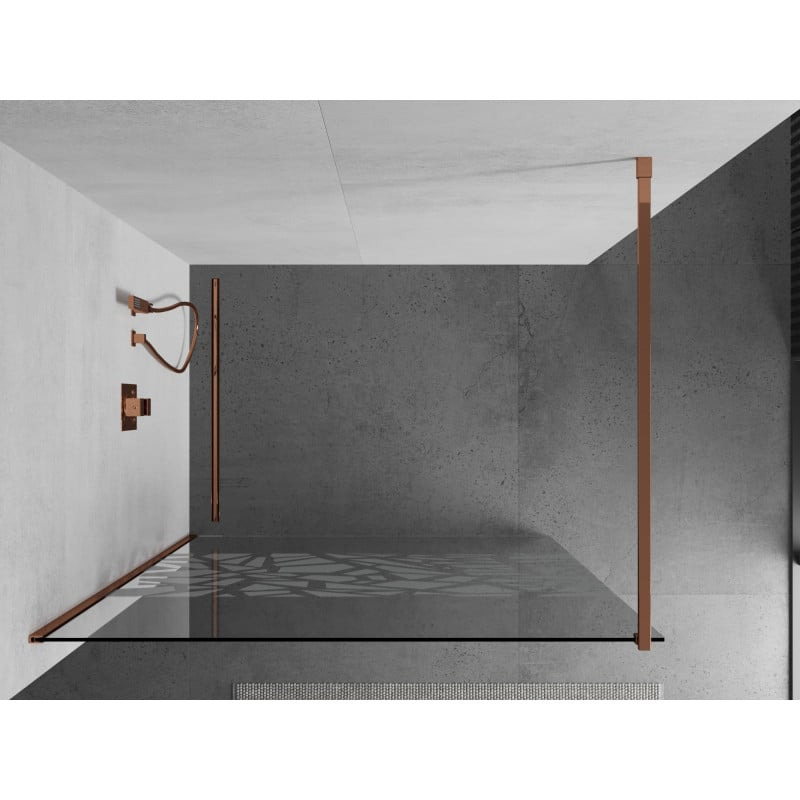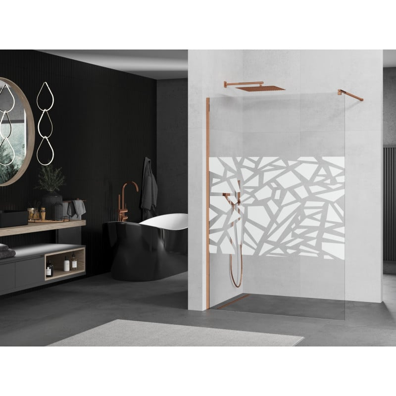 Špecifikácia produktu: Šírka: 70 cm Výška: 200 cm Montáž: Univerzálna, pravá alebo ľavá Farba skla: Biely vzor Povrchová úprava: Ružové zlato Typ skla: Tvrdené Hrúbka skla: 8 mm Profil: Hliník Konzola: Nerezová oceľ Max. dĺžka konzoly: 150 cm Konzolu je možné skrátiť Povrchová úprava pre ľahké čistenie Vyrovnáva nerovnosti steny Možnosť montáže na sprchovú vaničku alebo dlaždice