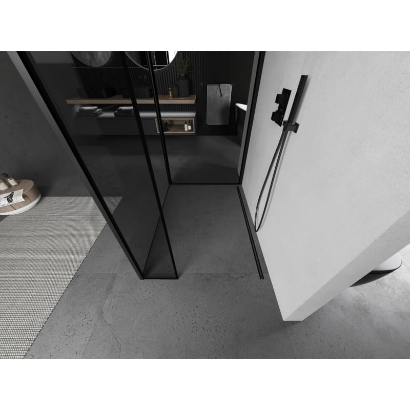 Špecifikácia produktu: Šírka: 90x90x40 cm (stena X - 90 cm, stena Y - 90 cm, stena Z - 40 cm) Výška: 200 cm Montáž: Univerzálna Farba skla: Čierny rám Povrchová úprava: Čierna Typ skla: Tvrdené Hrúbka skla: 8 mm dĺžka konzoly: 150 cm Konzolu je možné skrátiť Povrchová úprava pre ľahké čistenie Vyrovnanie nerovností steny Možnosť montáže na sprchovú vaničku alebo obklady