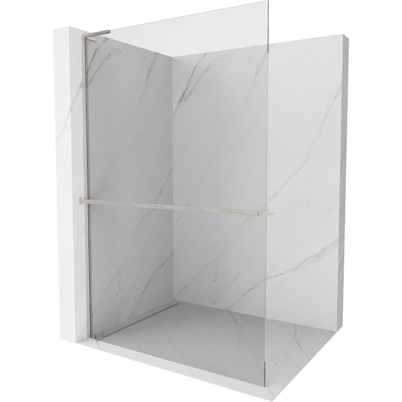 Špecifikácia produktu: Šírka: 55 cm Výška: 200 cm Montáž: Univerzálna, pravá alebo ľavá Farba skla: Priehľadná Povrchová úprava: Kartáčovaný nikel Typ skla: Tvrdené Hrúbka skla: 8 mm Profil: Hliník Uhlový stabilizátor v tvare L: Nerezová oceľ Materiál police: 3,2 cm Max. dĺžka police: 140 cm Možnosť skrátenia police Povlak na jednoduché čistenie Vyrovnanie nerovností steny Možnosť inštalácie na sprchovú vaničku alebo obklady