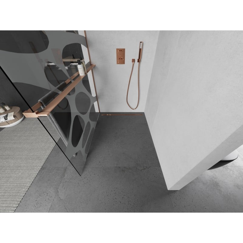 Mexen Kioto+ Sprchová zástena s poličkou 100 x 200 cm, biela vlna, kartáčovaná meď - 800-100-121-65-97