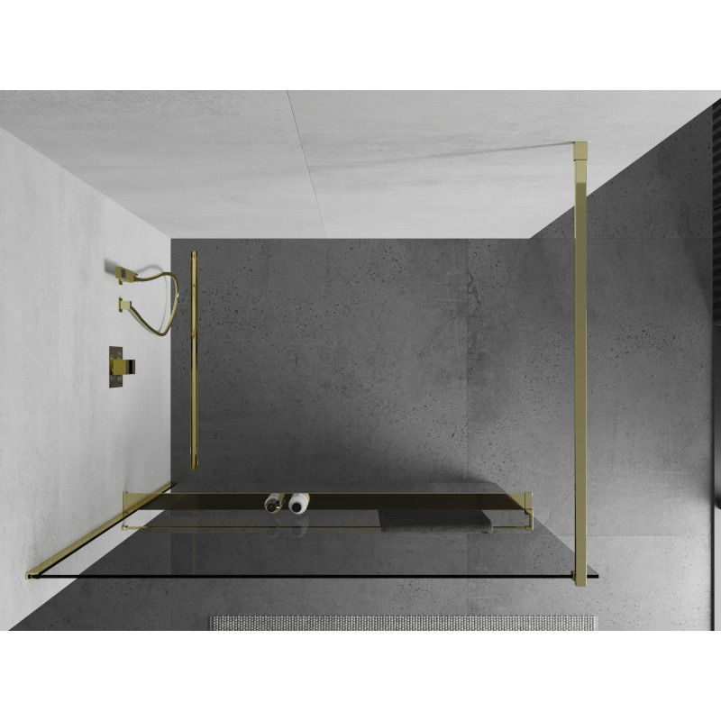 Mexen Kioto+ Sprchová zástena s poličkou 110 x 200 cm, priehľadná, zlatá - 800-110-121-50-00