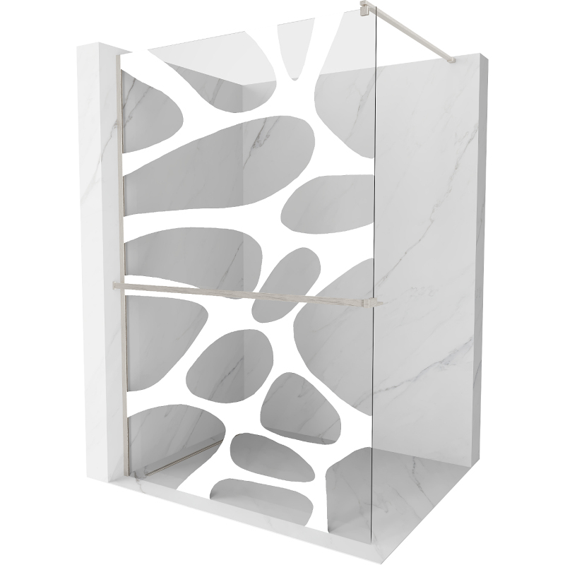 Špecifikácia produktu: Šírka: 140 cm Výška: 200 cm Montáž: Univerzálna, pravá alebo ľavá Farba skla: Biela vlna Povrchová úprava: Kartáčovaný nikel Typ skla: Tvrdené Hrúbka skla: 8 mm Profil: Hliník Konzola: Nerezová oceľ Max. dĺžka konzoly: 150 cm Materiál police: Hliník Šírka: 12,9 cm Výška: 3,2 cm Max. dĺžka police: 140 cm Možnosť skrátenia konzoly a police Povlak na jednoduché čistenie Vyrovnanie nerovností steny Možnosť montáže na sprchovú vaničku alebo obklady