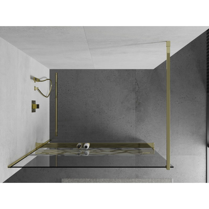 Mexen Kioto+ Sprchová zástena s poličkou 70 x 200 cm, biely vzor, zlatá - 800-070-121-50-85