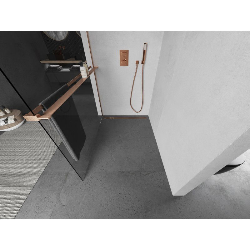 Mexen Kioto+ Sprchová zástena s poličkou 70 x 200 cm, priehľadná, kartáčovaná meď - 800-070-121-65-00