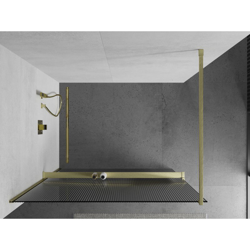 Mexen Kioto+ Sprchová zástena s poličkou 80 x 200 cm, pruhy, kartáčované zlato - 800-080-121-55-09