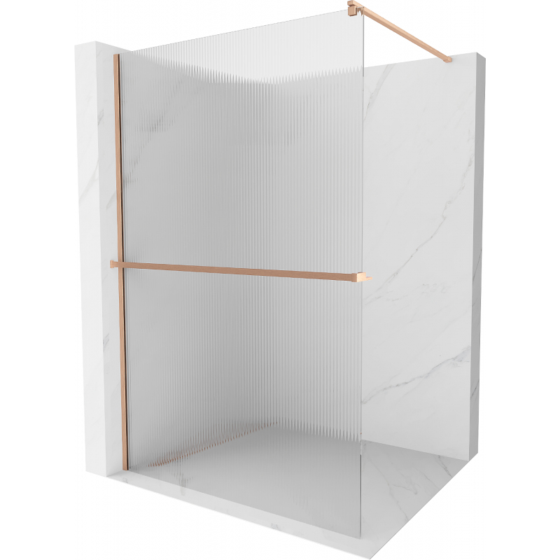 Špecifikácia produktu: Šírka: 90 cm Výška: 200 cm Montáž: Univerzálna, pravá alebo ľavá Farba skla: Pruhované Povrchová úprava: Kartáčovaná meď Typ skla: Tvrdené Hrúbka skla: 8 mm Profil: Hliník Konzola: Nerezová oceľ Max. dĺžka konzoly: 150 cm Materiál police: Hliník Šírka: 12,9 cm Výška: 3,2 cm Max. dĺžka police: 140 cm Konzolu a poličku je možné orezať Povrchová úprava pre ľahké čistenie Vyrovnáva nerovnosti steny Možno namontovať na sprchovú vaničku alebo dlaždice