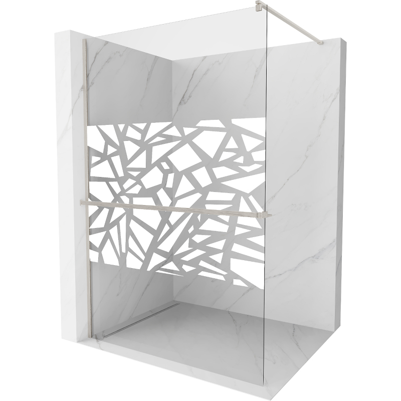 Špecifikácia produktu: Šírka: 100 cm Výška: 200 cm Montáž: Univerzálna, pravá alebo ľavá Farba skla: Biely vzor Povrchová úprava: Kartáčovaný nikel Typ skla: Tvrdené Hrúbka skla: 8 mm Profil: Hliník Konzola: Nerezová oceľ Max. dĺžka konzoly: 150 cm Materiál police: Hliník Šírka: 12,9 cm Výška: 3,2 cm Max. dĺžka police: 140 cm Možnosť skrátenia konzoly a police Povlak na jednoduché čistenie Vyrovnanie nerovností stien Možnosť montáže na sprchovú vaničku alebo obklady