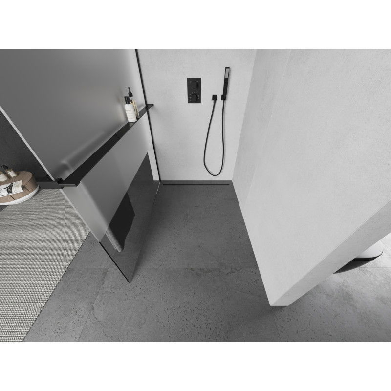 Mexen Kioto+ Sprchová zástena s policou 100 x 200 cm, priehľadná/mrazivá, čierna - 800-100-121-70-35
