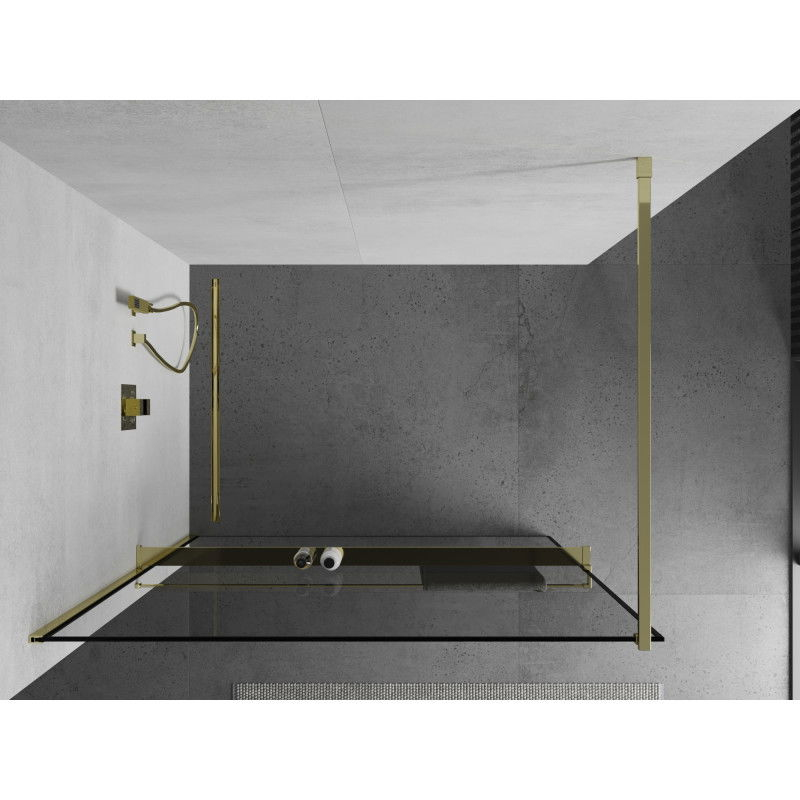 Mexen Kioto+ Sprchová zástena s policou 140 x 200 cm, čierny rám, zlatá - 800-140-121-50-70
