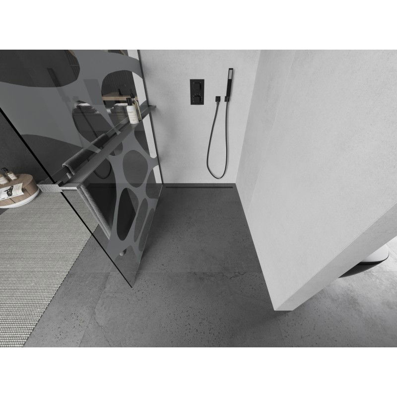Mexen Kioto+ Sprchová zástena s policou 80 x 200 cm, biela vlna, kartáčovaná pištoľovo sivá - 800-080-121-66-97