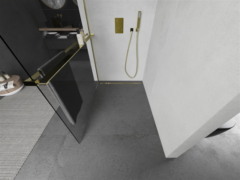 Mexen KIOTO+ zástena Walk-in s Walk-in policou 105x200, transp., zlatá 800-105-121-50-00