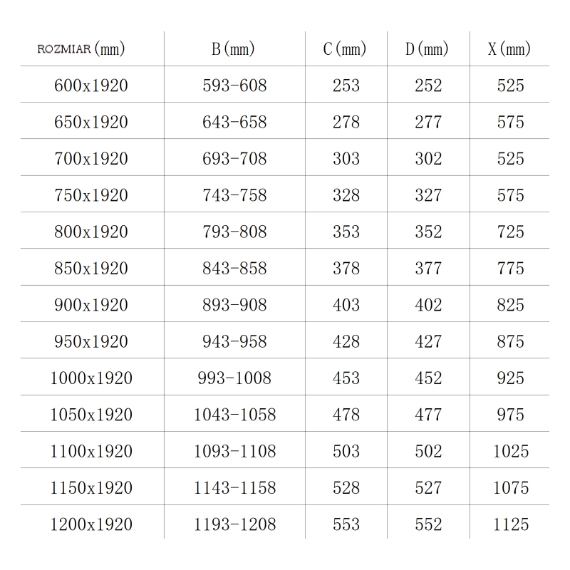 - Dvere (B min-max): 1140-1165