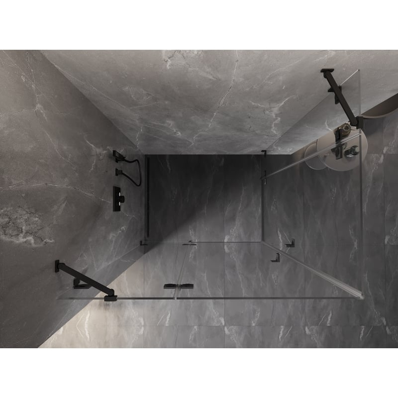 Špecifikácia produktu: Rozmer: 110x70 cm (ľavé dvere 110 cm, pravé dvere 70 cm) Výška: 200 cm Strana montáže: Ľavá Vchod: Dvere s výklopnými krídlami Farba skla: Priehľadná Povrchová úprava: Čierna Profil: Hliník Typ skla: Povrchová hrúbka skla šírka Dva montážne systémy: - s profilom, ktorý umožňuje vyrovnanie nerovností stien - bez profilu pre dokonale rovné steny Možnosť montáže na sprchovú vaničku alebo obklady Mechanizmus na zdvíhanie a spúšťanie dverí Mosadzné svorky a pánty v jednej rovine so sklenenou tabuľou Magnetický prúžok a elastomérové tesnenie pre odvod vody