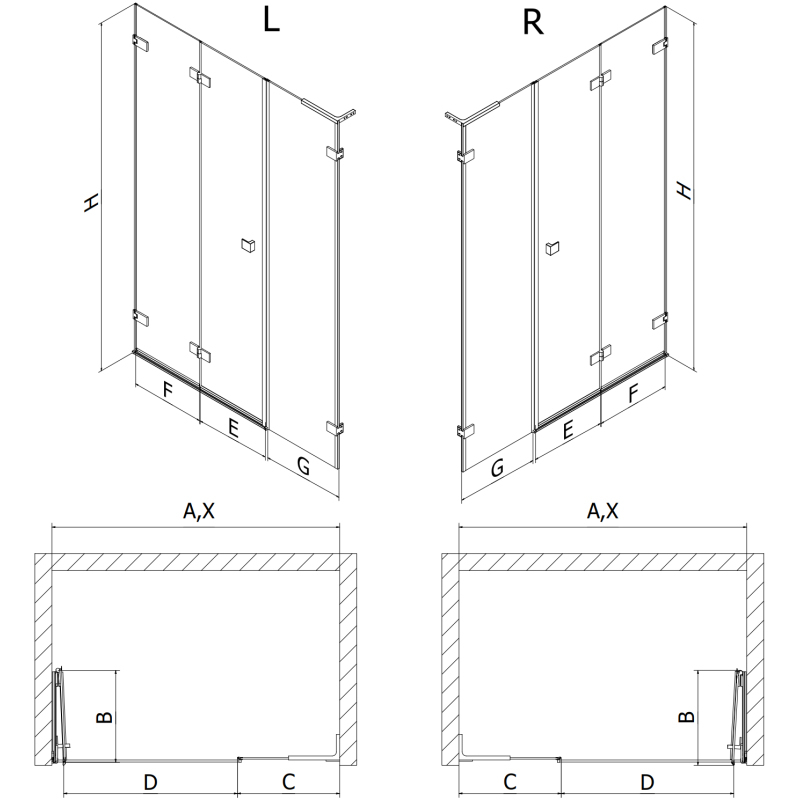 Špecifikácia produktu: Rozmer: 115x200 cm Strana montáže: Ľavá Vchod: Skladacia Farba skla: Priehľadná Povrchová úprava: Biela Profil: Hliník Stabilizátor v tvare L: Nerezová oceľ Typ skla: Tvrdené Hrúbka skla: dvere 6 mm, stena 8 mm Povlak pre ľahké čistenie nerovností steny - Bez profilu v prípade dokonale rovných stien Možnosť montáže na sprchovú vaničku alebo obklady Mosadzné svorky a pánty v jednej rovine so sklenenou tabuľou Magnetický prúžok a elastomérové tesnenie pre odvod vody Hliníkový prah tesnenia dverí