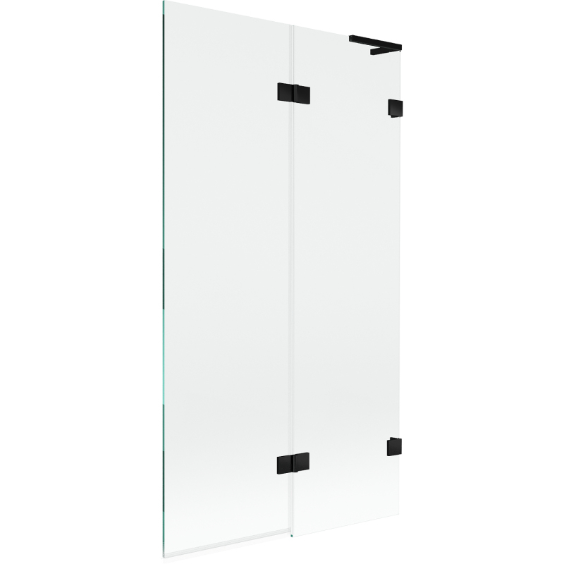 Špecifikácia produktu: Šírka: 100 cm Výška: 150 cm Typ: 2krídlové Strana montáže: Pravá Typ: Pohyblivé/Výklopné Typ skla: Tvrdené Farba skla: Priehľadná Hrúbka skla: 8 mm Povrchová úprava: Čierna Uhlový stabilizátor L: Nerezová oceľ Povlak v jednej rovine so sklom Elastomérové tesnenia pre odvod vody Dva montážne systémy: - s profilom, ktorý umožňuje vyrovnanie nerovností steny - bez profilu pre dokonale rovné steny