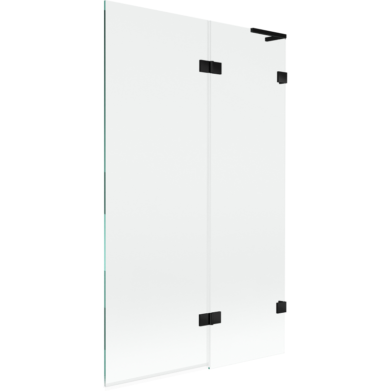 Špecifikácia produktu: Šírka: 110 cm Výška: 150 cm Typ: 2krídlové Strana montáže: Pravá Typ: Pohyblivé/Výklopné Typ skla: Tvrdené Farba skla: Priehľadná Hrúbka skla: 8 mm Povrchová úprava: Čierna Uhlový stabilizátor L: Nerezová oceľ Povlak v jednej rovine so sklom Elastomérové tesnenia pre odvod vody Dva montážne systémy: - s profilom, ktorý umožňuje vyrovnanie nerovností steny - bez profilu pre dokonale rovné steny
