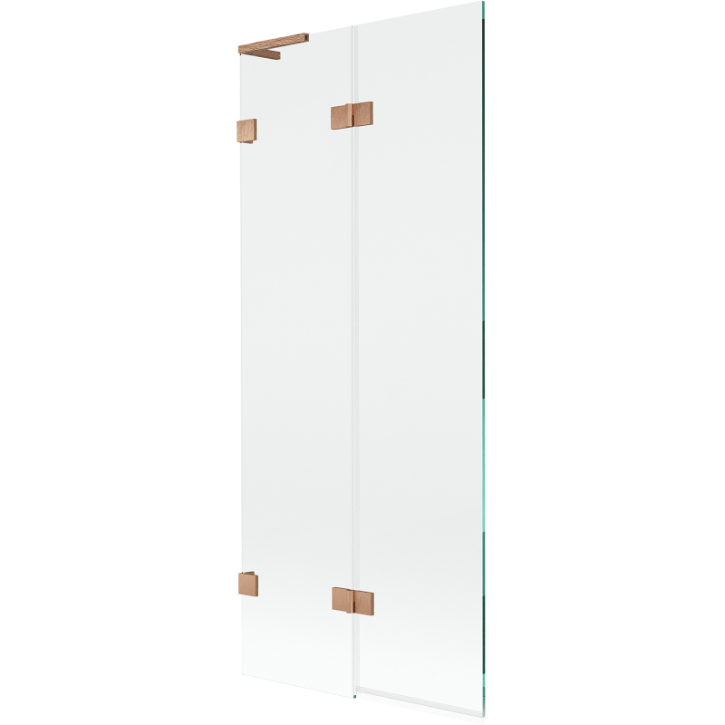 Špecifikácia produktu: Šírka: 80 cm Výška: 150 cm Typ: 2krídlové Strana montáže: Ľavá Typ: Pohyblivé/Výklopné Typ skla: Tvrdené Farba skla: Priehľadná Hrúbka skla: 8 mm Povrchová úprava: Kartáčovaná meď Stabilizátor uhla L: Nerezová svorky a pánty v jednej rovine so sklom Elastomérové tesnenia pre odvod vody Dva montážne systémy: - s profilom, ktorý umožňuje vyrovnanie nerovností steny - bez profilu pre dokonale rovné steny