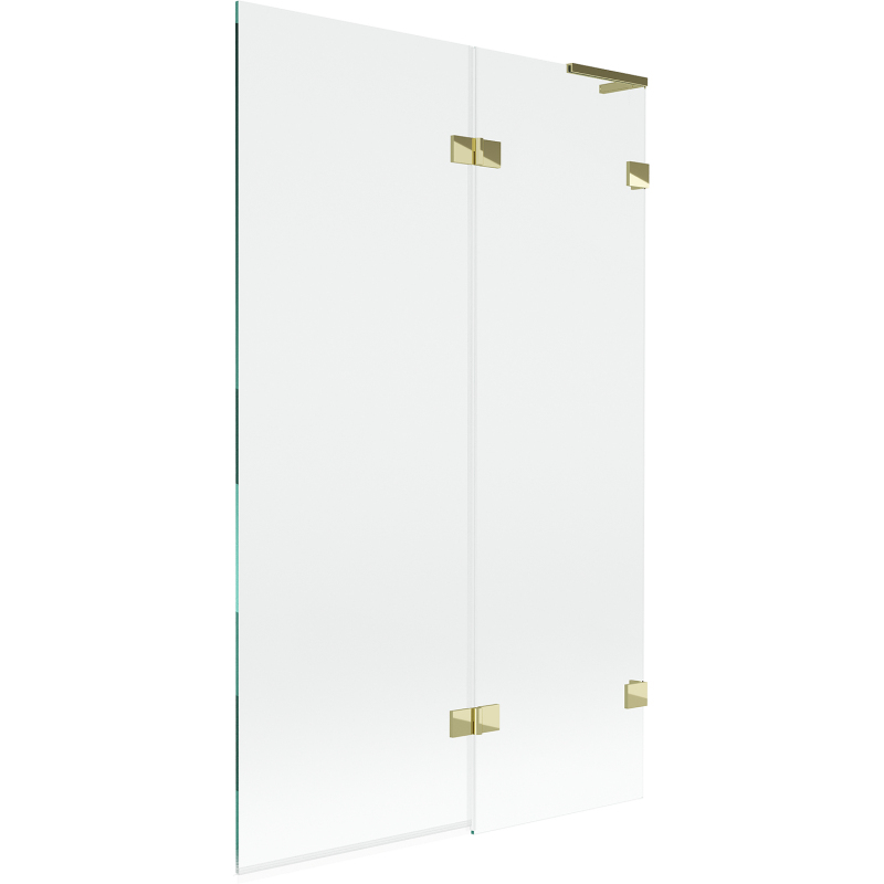 Špecifikácia produktu: Šírka: 110 cm Výška: 150 cm Typ: 2krídlové Strana montáže: Pravá Typ: Pohyblivé/Výklopné Typ skla: Tvrdené Farba skla: Priehľadná Hrúbka skla: 8 mm Povrchová úprava: Zlatá Stabilizátor uhla L: Nerezová oceľ P: Nerezová oceľ a pánty v jednej rovine so sklom Elastomérové tesnenia pre odvod vody Dva montážne systémy: - s profilom, ktorý umožňuje vyrovnanie nerovností steny - bez profilu pre dokonale rovné steny