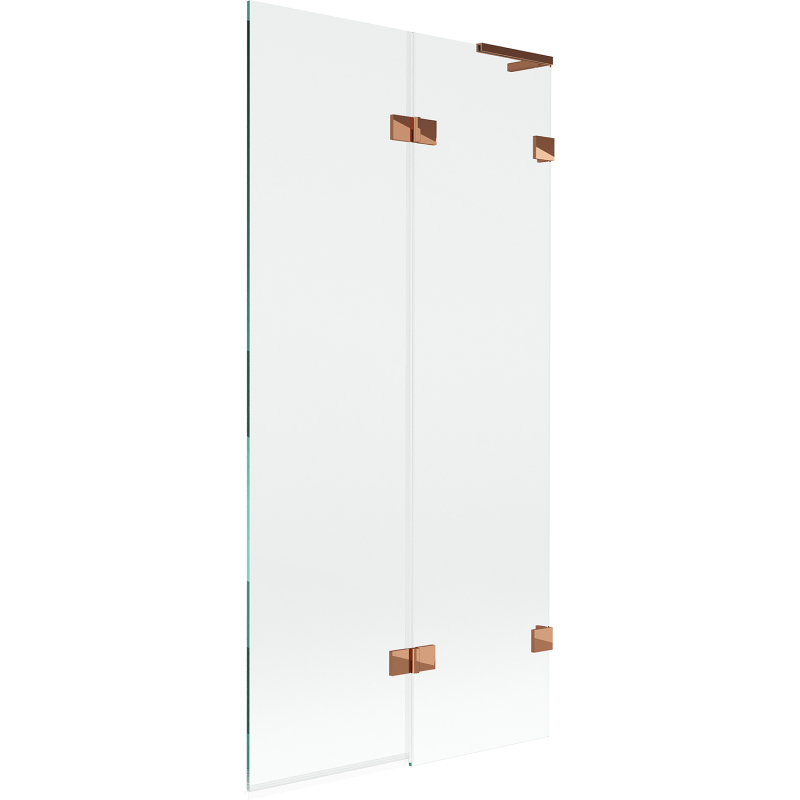 Špecifikácia produktu: Šírka: 90 cm Výška: 150 cm Typ: 2krídlové Strana montáže: Pravá Typ: Pohyblivé/Výklopné Typ skla: Tvrdené Farba skla: Priehľadná Hrúbka skla: 8 mm Povrchová úprava: Ružové zlato Stabilizátor uhla L: Nerezová oceľ svorky a pánty v jednej rovine so sklom Elastomérové tesnenia pre odvod vody Dva montážne systémy: - s profilom, ktorý umožňuje vyrovnanie nerovností steny - bez profilu pre dokonale rovné steny