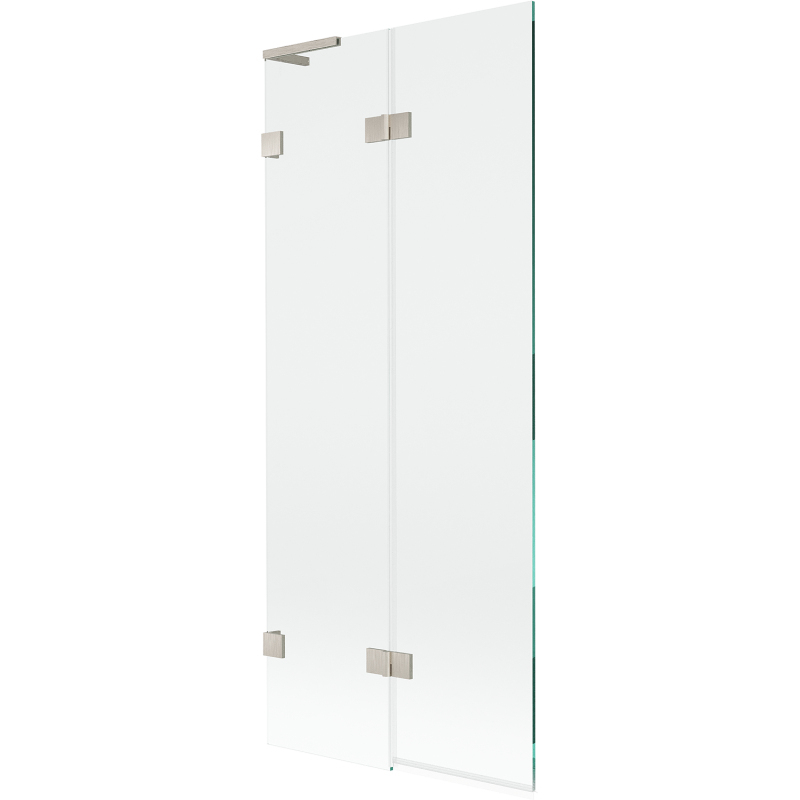 Špecifikácia produktu: Šírka: 80 cm Výška: 150 cm Typ: 2krídlové Strana montáže: Ľavá Typ: Pohyblivé/Výklopné Typ skla: Tvrdené Farba skla: Priehľadná Hrúbka skla: 8 mm Povrchová úprava: Kartáčovaný nikel Stabilizátor uhla L: Nerezová svorky a pánty v jednej rovine so sklom Elastomérové tesnenia pre odvod vody Dva montážne systémy: - s profilom, ktorý umožňuje vyrovnanie nerovností steny - bez profilu pre dokonale rovné steny