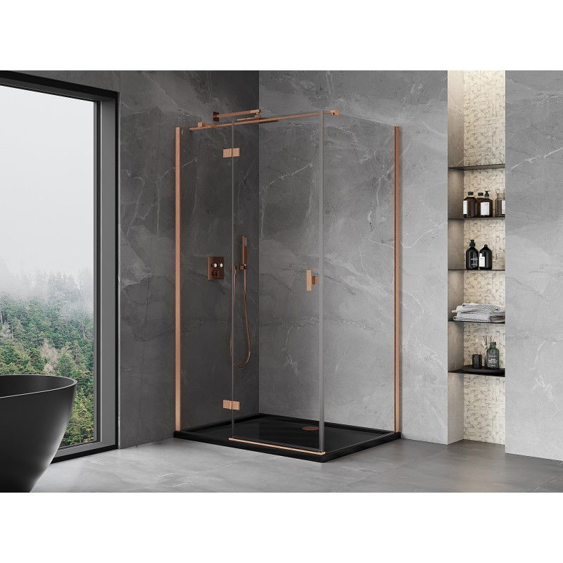 Mexen Mist-H T sprchovací kút s ľavým výklopným uzáverom 90 x 70 cm, priehľadný, kartáčovaná meď - 8A5T-090-070-65-00-L