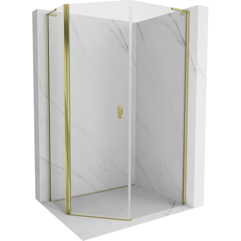 Mexen Mist L päťuholníkový asymetrický výklopný sprchovací kút 80 x 100 cm, priehľadný, zlatý - 8A8L-080-100-50-00