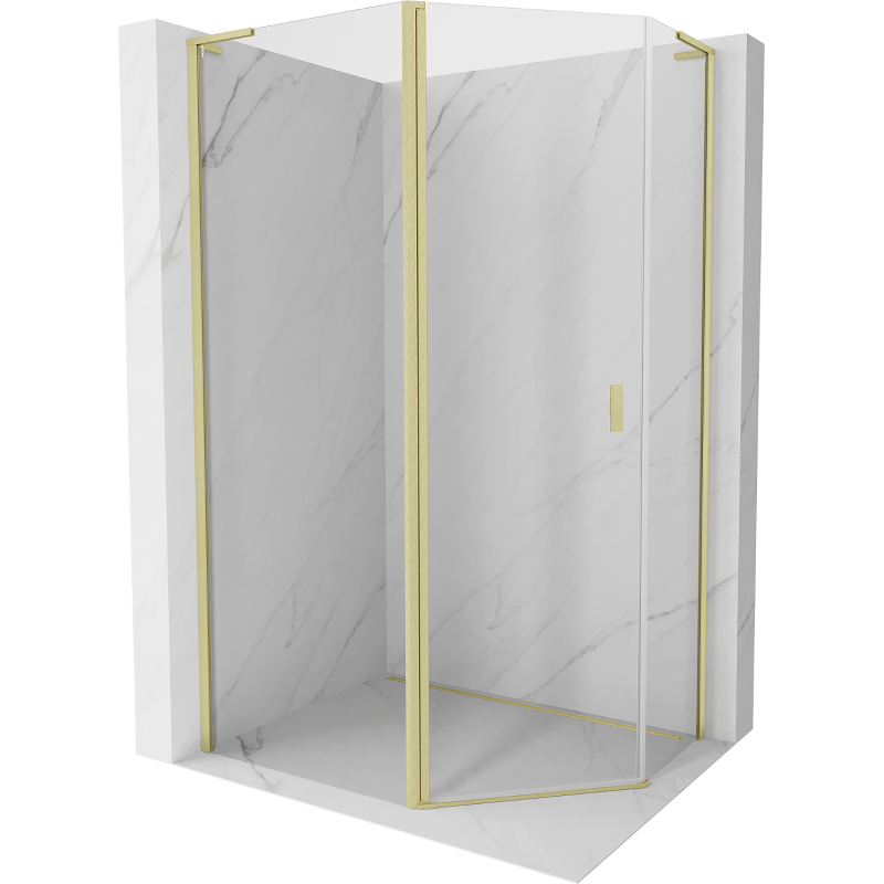 Mexen Mist L päťuholníkový asymetrický výklopný sprchovací kút 90x80 cm, priehľadný, kartáčované zlato - 8A8L-090-080-55-00