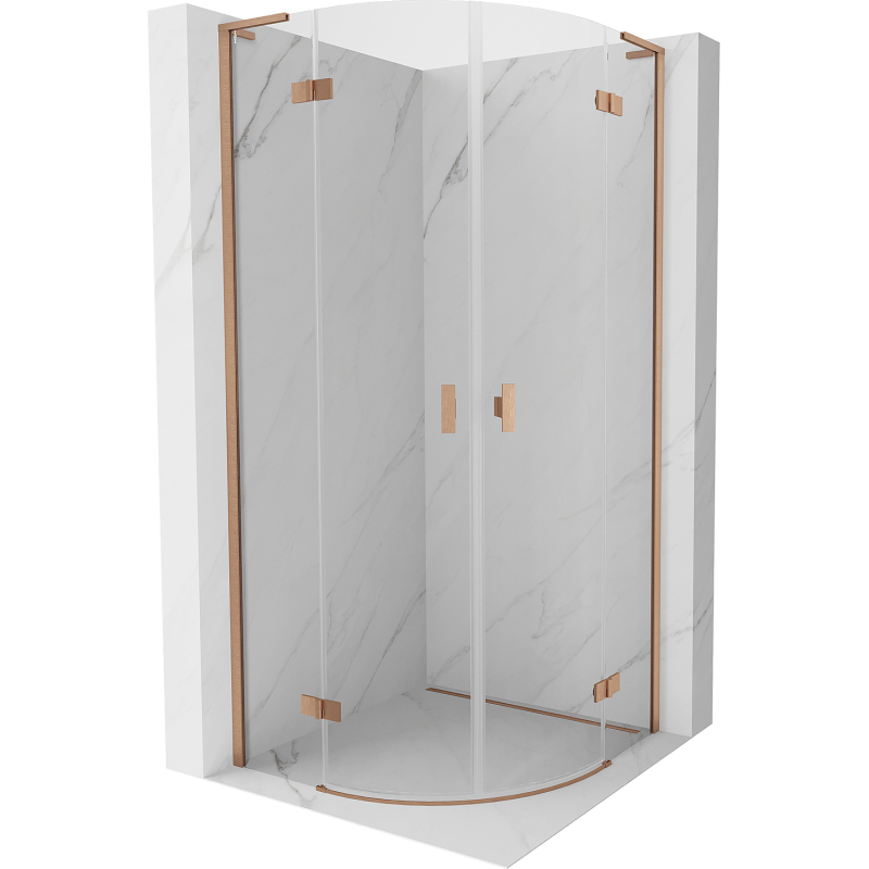 Mexen Mist L polkruhový výklopný sprchovací kút 100 x 100 cm, priehľadný, kartáčovaná meď - 8A33L-100-100-65-00